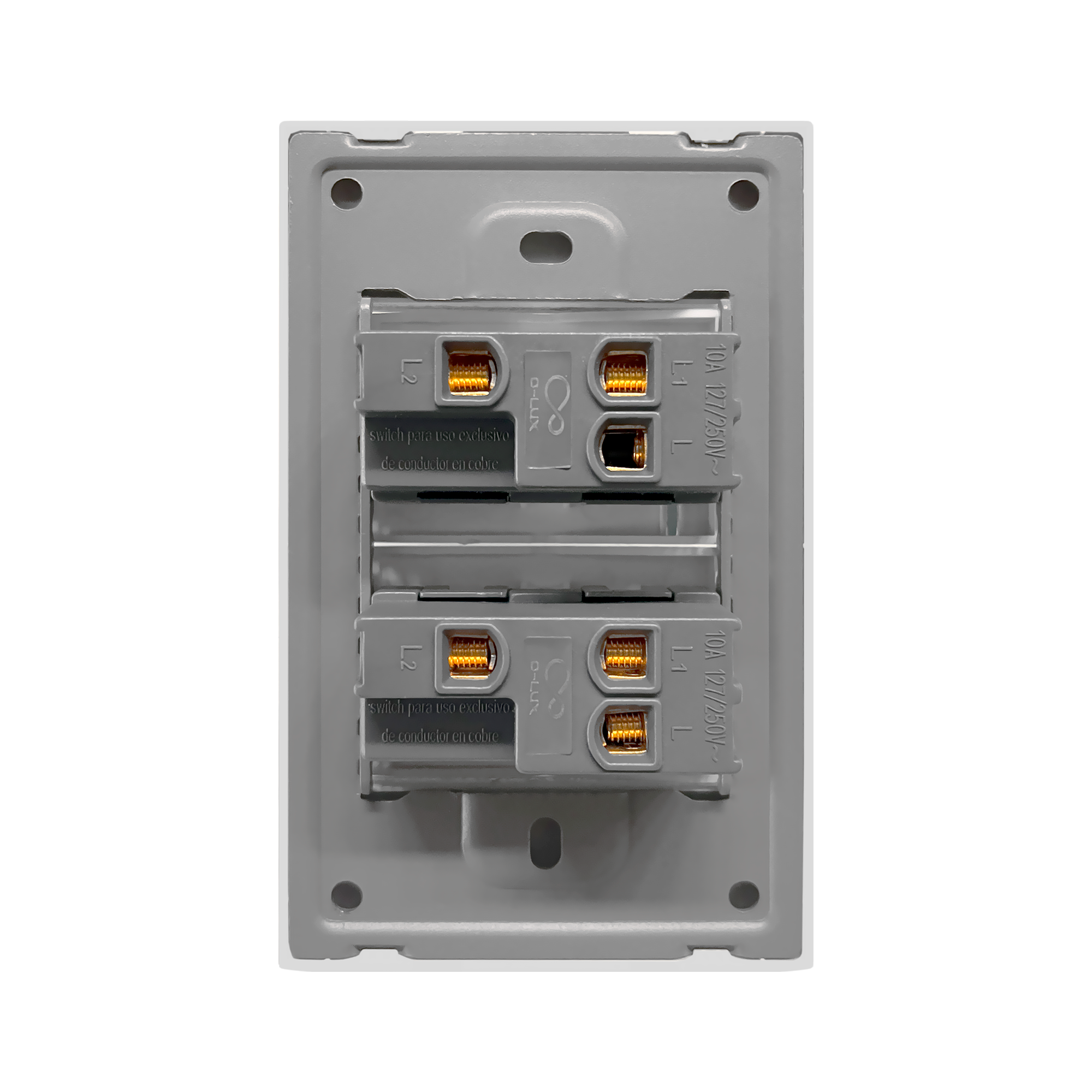 Placa de contacto doble con diseño minimalista y elegante, fabricada en acabado metálico cepillado para un estilo moderno y sofisticado. Ideal para proyectos residenciales y comerciales de alta gama, esta placa combina funcionalidad y estética, ofreciendo durabilidad y un toque premium para cualquier espacio. Perfecta para quienes buscan una integración armónica entre tecnología y diseño.